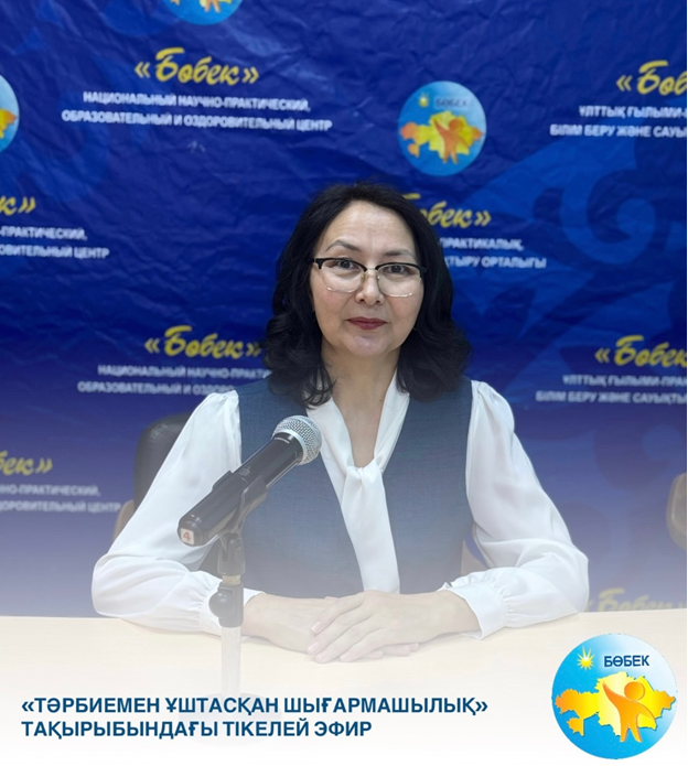 13–ші ақпан күні “Бөбек” ҰҒПББСО-ның Оқу-сауықтыру кешенінің тәрбиешісі Узенова Рахия Нұрмаханбетовна «Тәрбиемен ұштасқан шығармашылық» тақырыбында тікелей эфирде сөз сөйледі. Өз сөзінде Рахия Нұрмаханбетовна Қазақстан аймақтарынан келген балалармен жүргізілетін рухани-адамгершілік тәрбие жұмыстары туралы айтып берді.